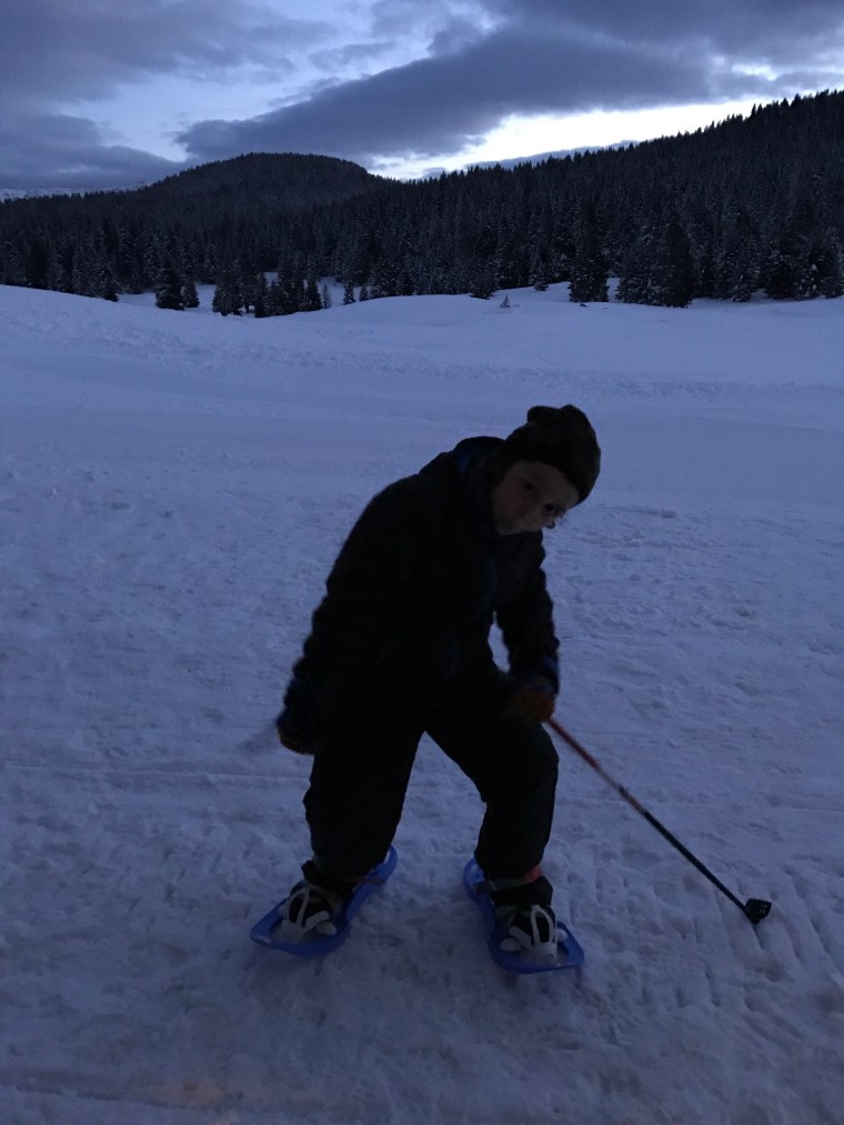 Vi consigliamo un’esperienza meravigliosa con i vostri bimbi.Questo fine settimana ci siamo recati a Passo Coe in Alpe di Cimbra un paesaggio meraviglioso, e insieme alla guida Leonardo della scuola di sci Scie di Passione ci siamo cimentati in una fantastica Ciaspolata in Notturna, ci doveva accompagnare la Luna Piena, ma aimè il tempo non è stato dalla nostra parte, ma ogni tanto ci ha fatto capolino per un saluto.Jacopo era molto elettrizzato insieme al suo amichetto, diciamo che anche noi grandi…..non eravamo da meno!E via che si parte nella nostra ciaspolataaaa….. vi devo dire che è stato meraviglioso, sentire il suono della neve sotto le ciaspole, il silenzio delle montagne e la luce della notte che si rifletteva sul nostro paesaggio….veramente emozionate.La guida ci ha dato delle delucidazioni su Passo Coe, sui Forti che possiamo trovare in Alpe di Cimbra e su la Base Tuono, che riuscivamo a intravedere in lontananza, più’ che la base, i missili a testata nucleare dei tempi della Guerra Fredda.La nostra passeggiata è durata un ora, con difficoltà facile, basta che i vostri bimbi abbiano voglia di camminare.Ringraziamo Scie di Passione per averci dato la possibilità di conoscere Passo Coe in Notturna e ringraziamo la nostra guida Leonardo.A presto Viaggiatori…..