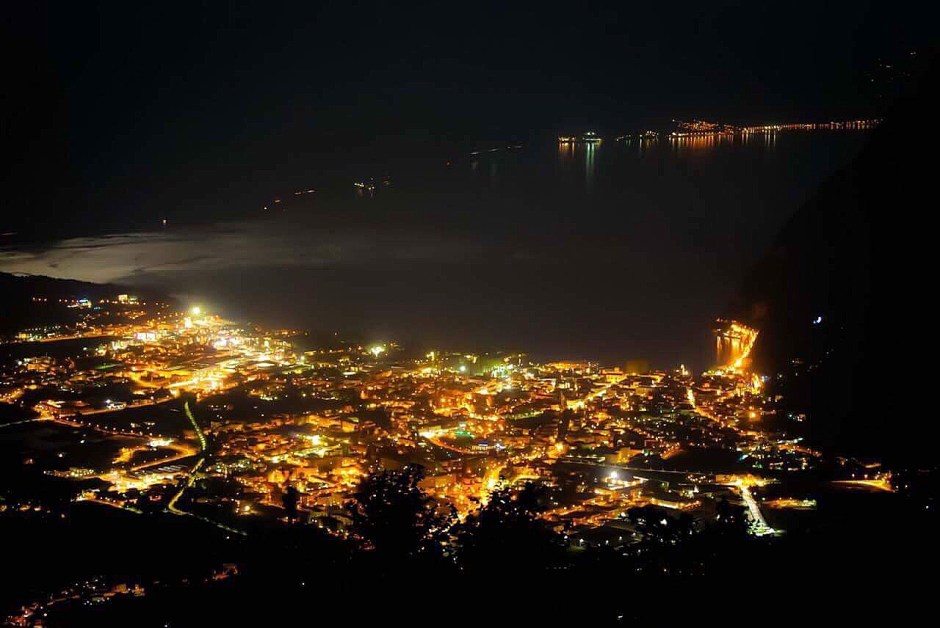 la notte ancora più bello….fare due chiacchere come un tempo al buio sugli sdraio e ammirare lo splendore di Riva del Garda e l’Alto Garda.